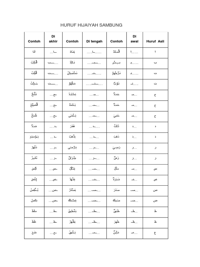 Bahasa selain Arab yang mengadaptasi aksara Arab telah menambahi dan mengurangi beberapa huruf seperti bahasa Kurdi bahasa Persia bahasa Turki Utsmaniyah bahasa Sindhi bahasa Urdu bahasa Melayu bahasa Jawa bahasa Pashtun dan bahasa Malayalam dengan sistem penulisannya Arabi Malayalam yang semuanya memiliki huruf-huruf tambahan seperti bisa dilihat di bawah. 0 Full PDFs related to this paper. Menyambung Huruf Hijaiyah Pdf 62.