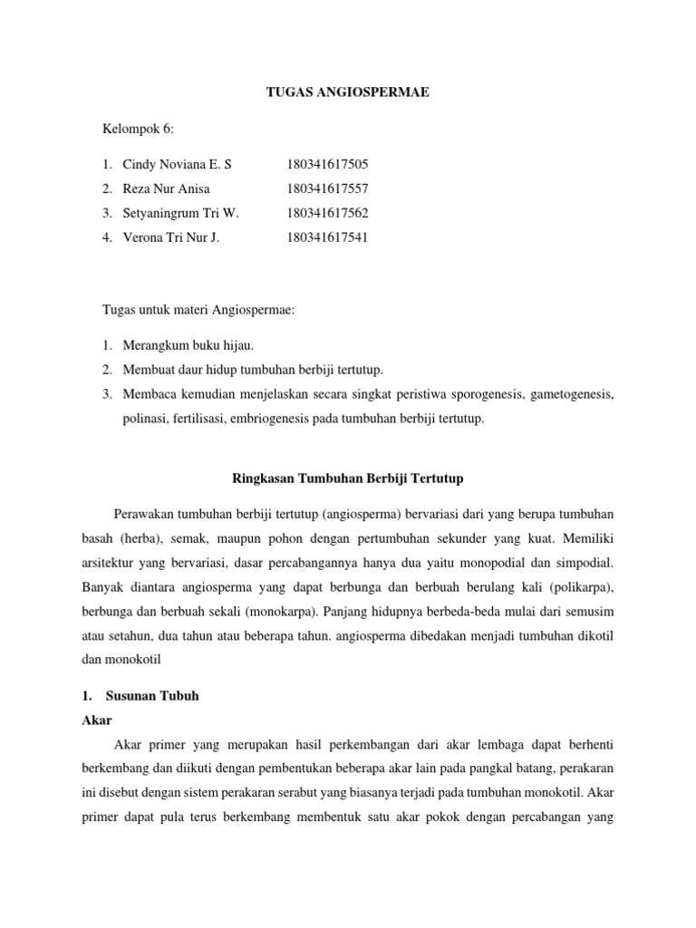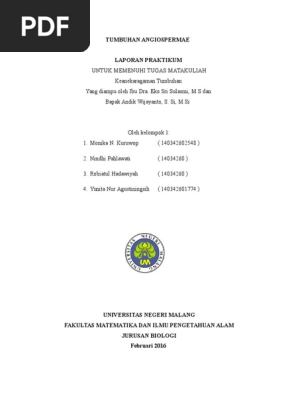 Bakal biji diliputi oleh sporofil yang berbentuk karpel atau daging buah dan secara keseluruhan membentuk bakal buah atau ovarium b. Laporan Praktikum Angiospermae April 20 2017 Pengenalan Divisio Angiospermae The Introduction og Angyospermae Ria Andriani riaandriani bio15fkipunsyiahacid Abstrak Angiospermae adalah tumbuhan berbiji yang tertutup tertutup. Dharmono MSi Mella Mutika Sari MPd PROGRAM STUDI PENDIDIKAN IPA JURUSAN PENDIDIKAN MATEMATIKA DAN IPA FAKULTAS.