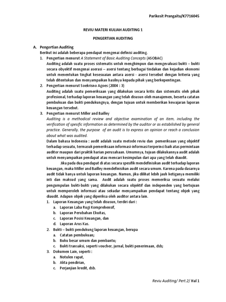 Kasusdocx 17Kb Periksaan Akuntansi 1 - Materi 1. Audit 1 Kode Mata Kuliah. Mengapa Mahasiswa mempelajari mata kuliah Auditing.