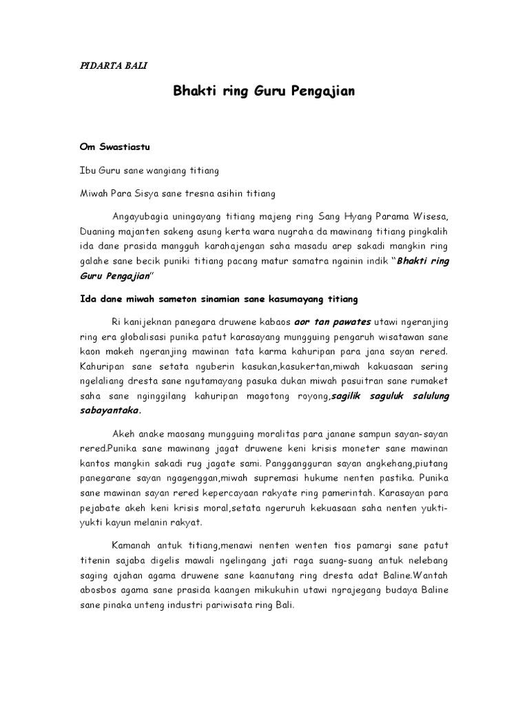Pidatob Bali Ngrajegang Budaya Bali Ngrajegang Budaya Bali Inggih Ida Dane Sareng Sami Utamanipun Bapak Guru Sane Dahat Wangiang Titiang Ida Dane Para Course Hero