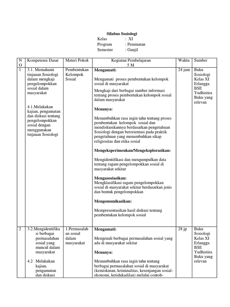 Dowload Silabus Sosiologi Kelas X Kurikulum 2013 Pdf Guru Galeri
