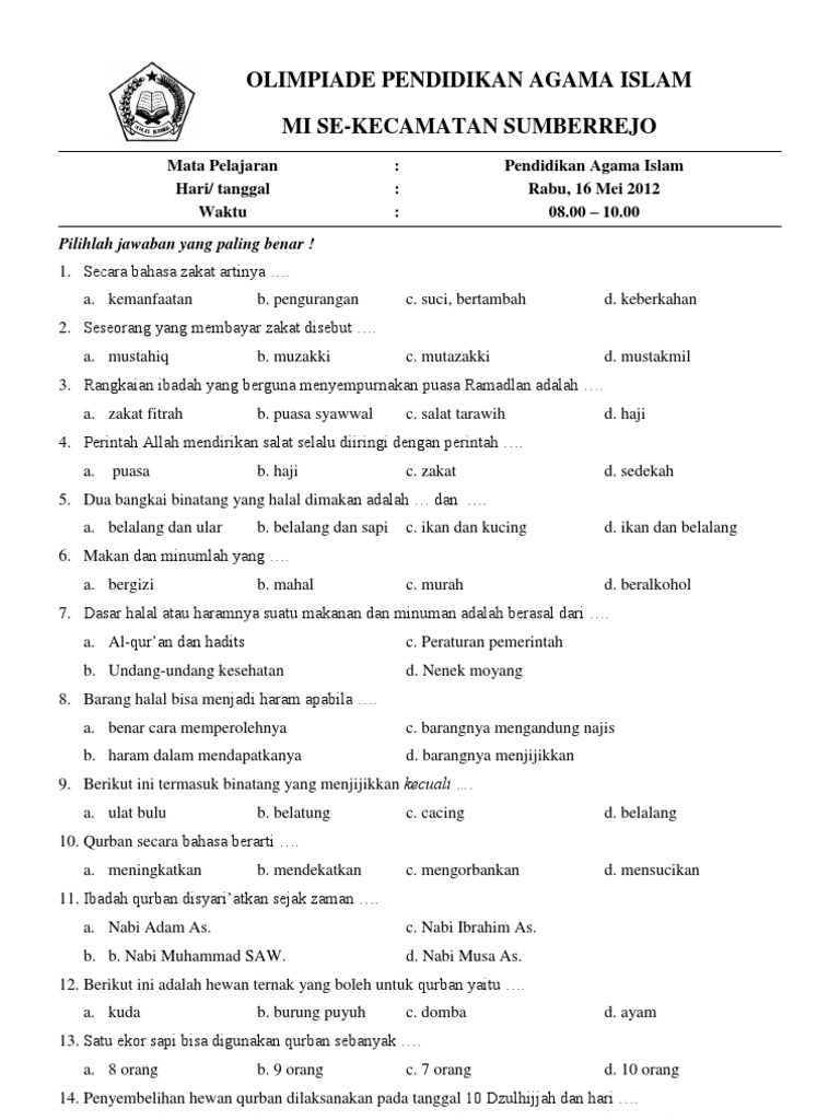 Soal olimpiade pai sd/mi. Soal OSN IPA SD Olimpiade Terbaru dan Pembahasannya Wah No 3 Dalam laboratorium sekolah terdapat sekelompok hewan yang diawetkan antara lain. Soal Olimpiade Ipa Sd Kls 3 Rpp Agama Kristen Sd Kelas 1-6 Berkarakter Contoh Rpp Agama Mi Kurikulum 2013 Soal Dan Pembahasan Pertidaksamaan Variabel Buku Panduan Belajar Bahasa Korea Pdf Buku Siswa Kurikulum 2013 Sd Revisi Kalender Pendidikan Rohul 2015 Rpp Tematik Kls 3 Kurikulum 2013 Soal Ulangan Harian Kelas 6 Sd Semester 1 Matematika. 20191225 Soal USBN PAI SD.