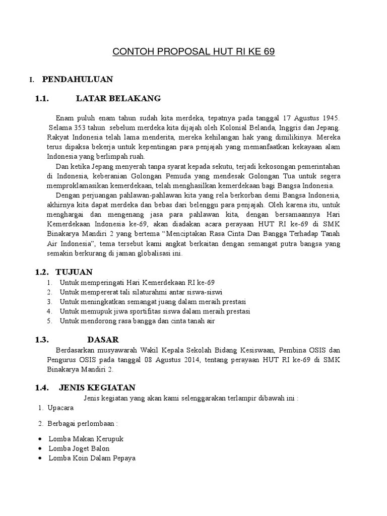 Contoh Proposal Kegiatan Peringatan Hut Kemerdekaan Ri Ke 69